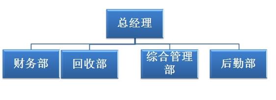 公司自总经理以下分为:财务部、回收部、综合管理部、后勤部。